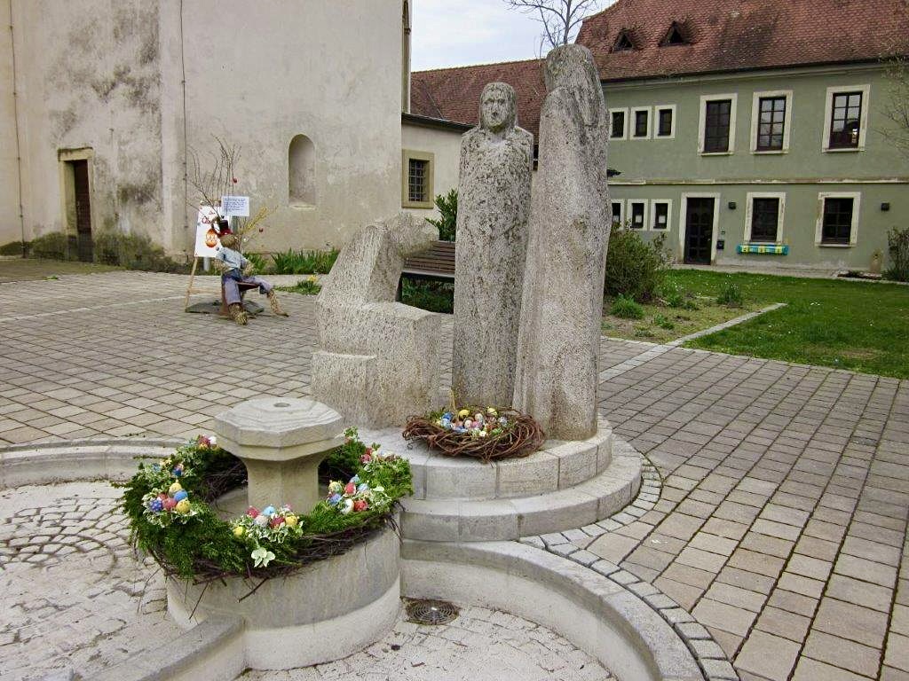 Und der Brunnen? Wie jedes Jahr erstrahlt er in traditioneller österlicher Pracht. So verbindet der Schmuck des Kirchplatzes gekonnt Neues mit Bewährtem.